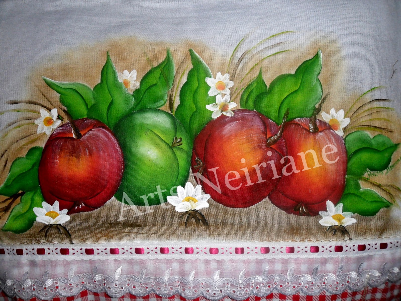 porta pano de prato com maçãs em feltro sendo a maça porta treco e pano de pintado maçãs